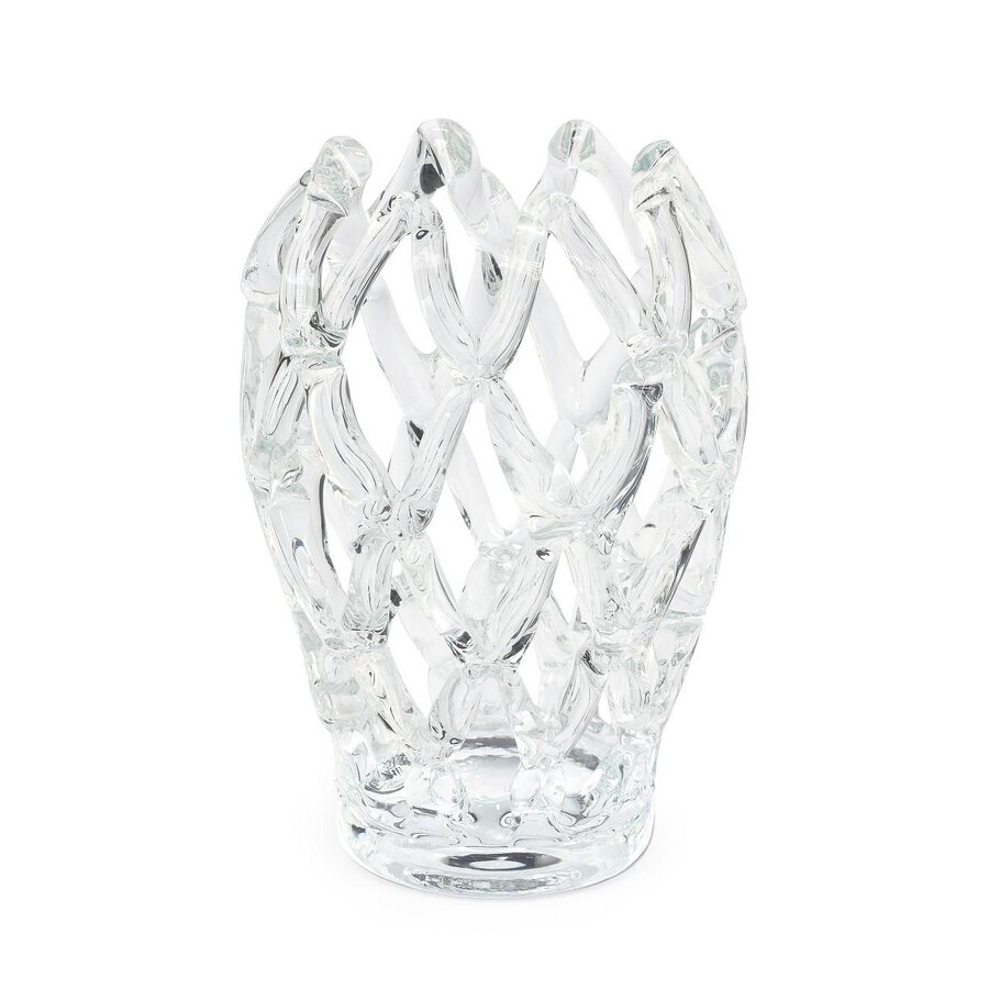 Handmade clear glass candleholder.