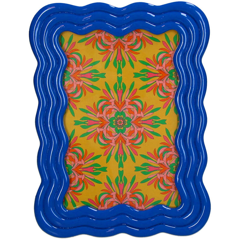 A curved polyresin photo frame in blue, ideal for an elegant and modern look.