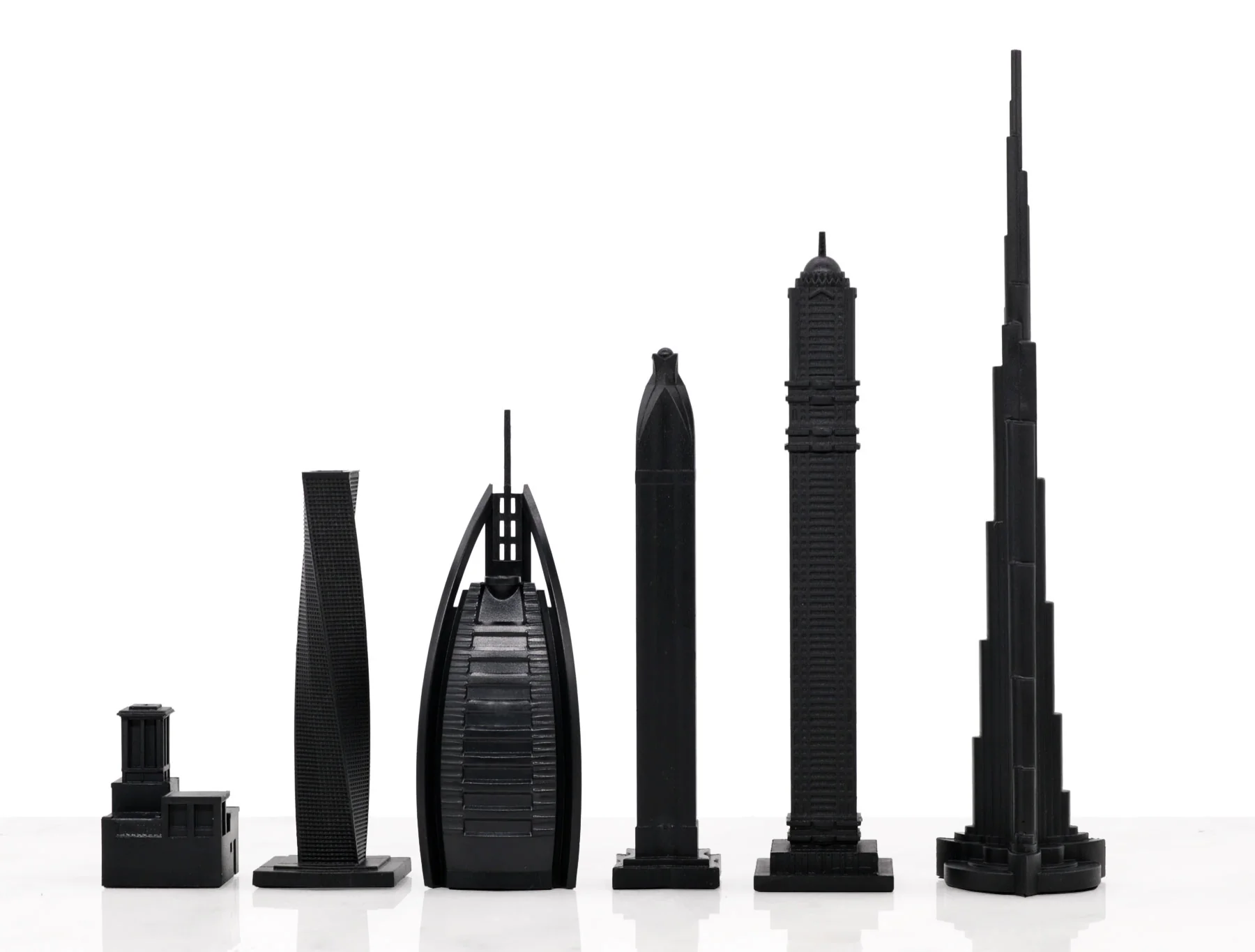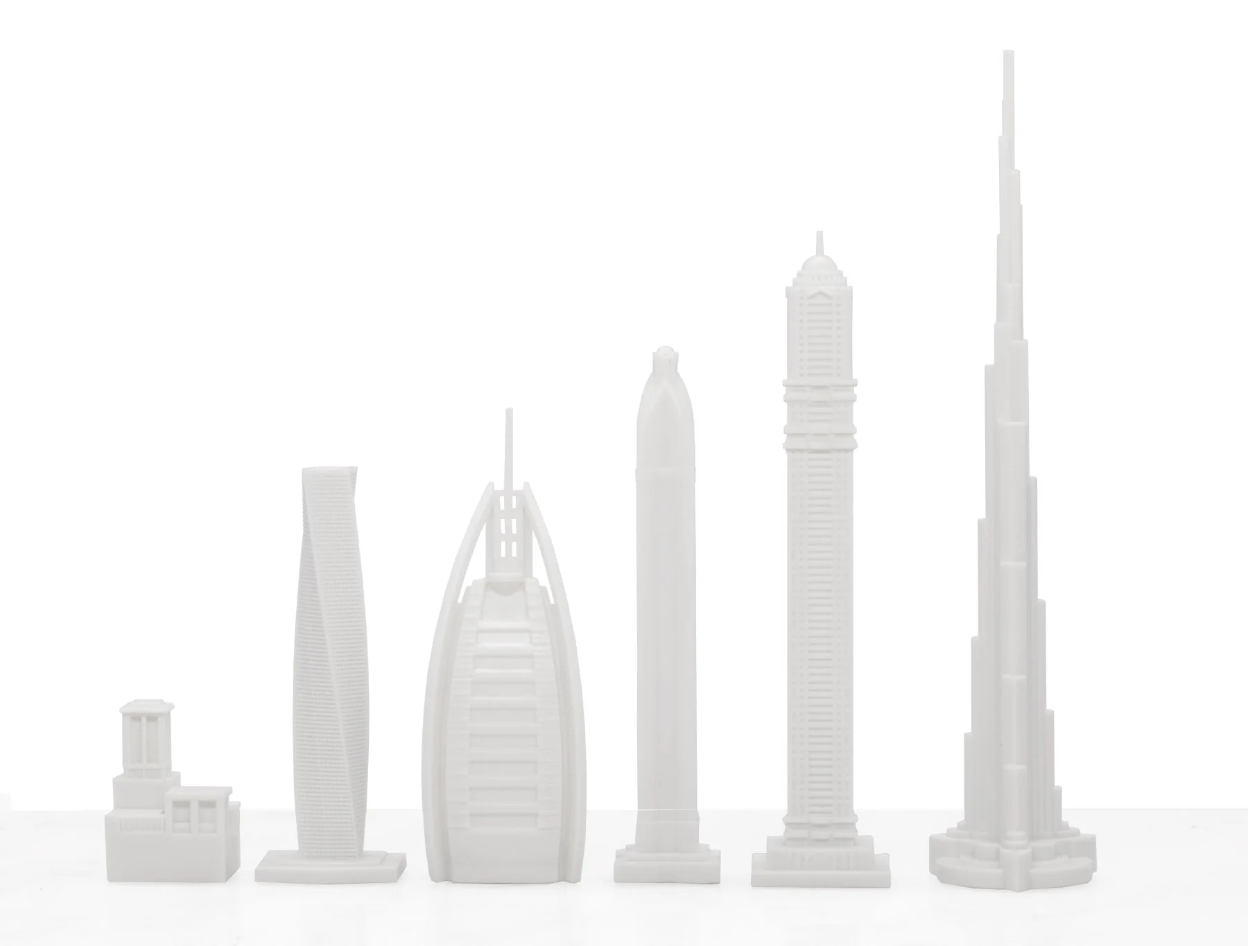 - A show-stopping display of Dubai’s most famous buildings, including Cayan Tower, the Burj al Arab, Rose Rotana, Princess Tower and the Burj Khalifa.