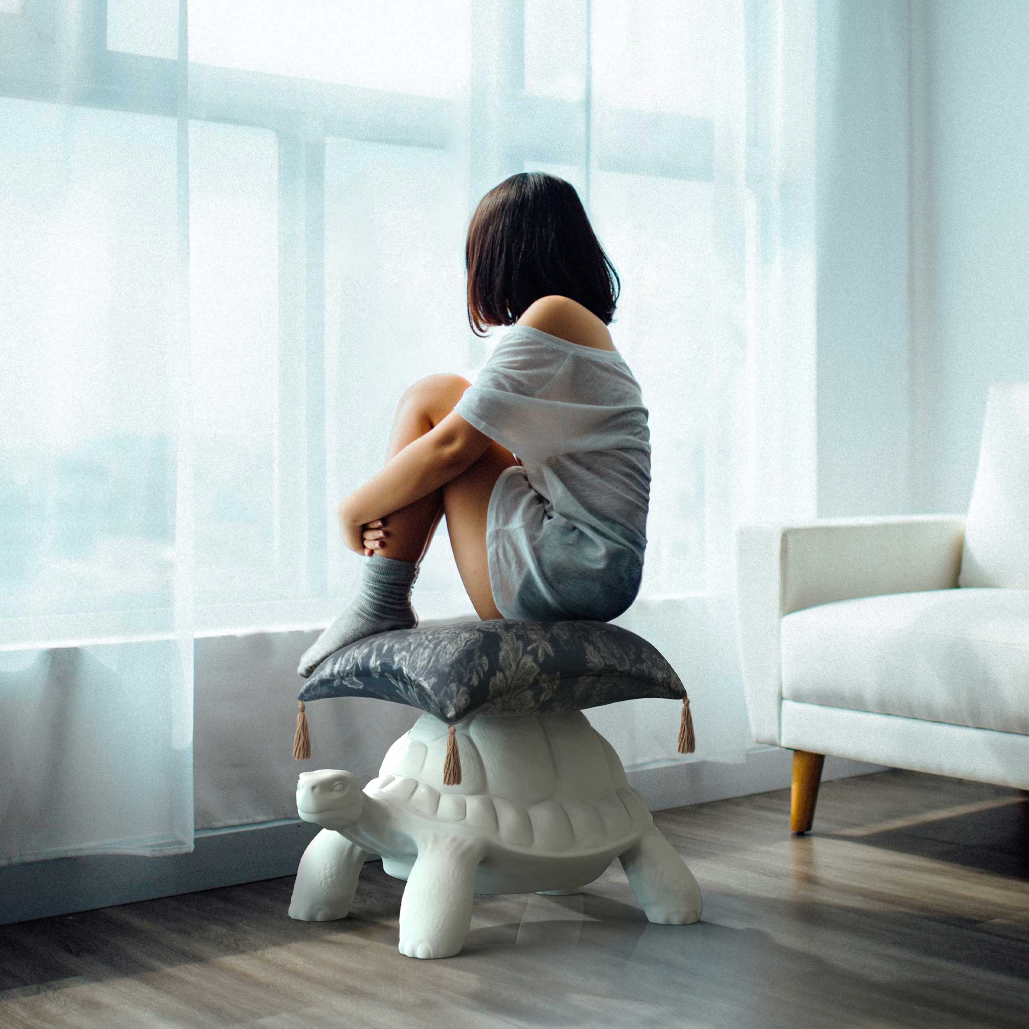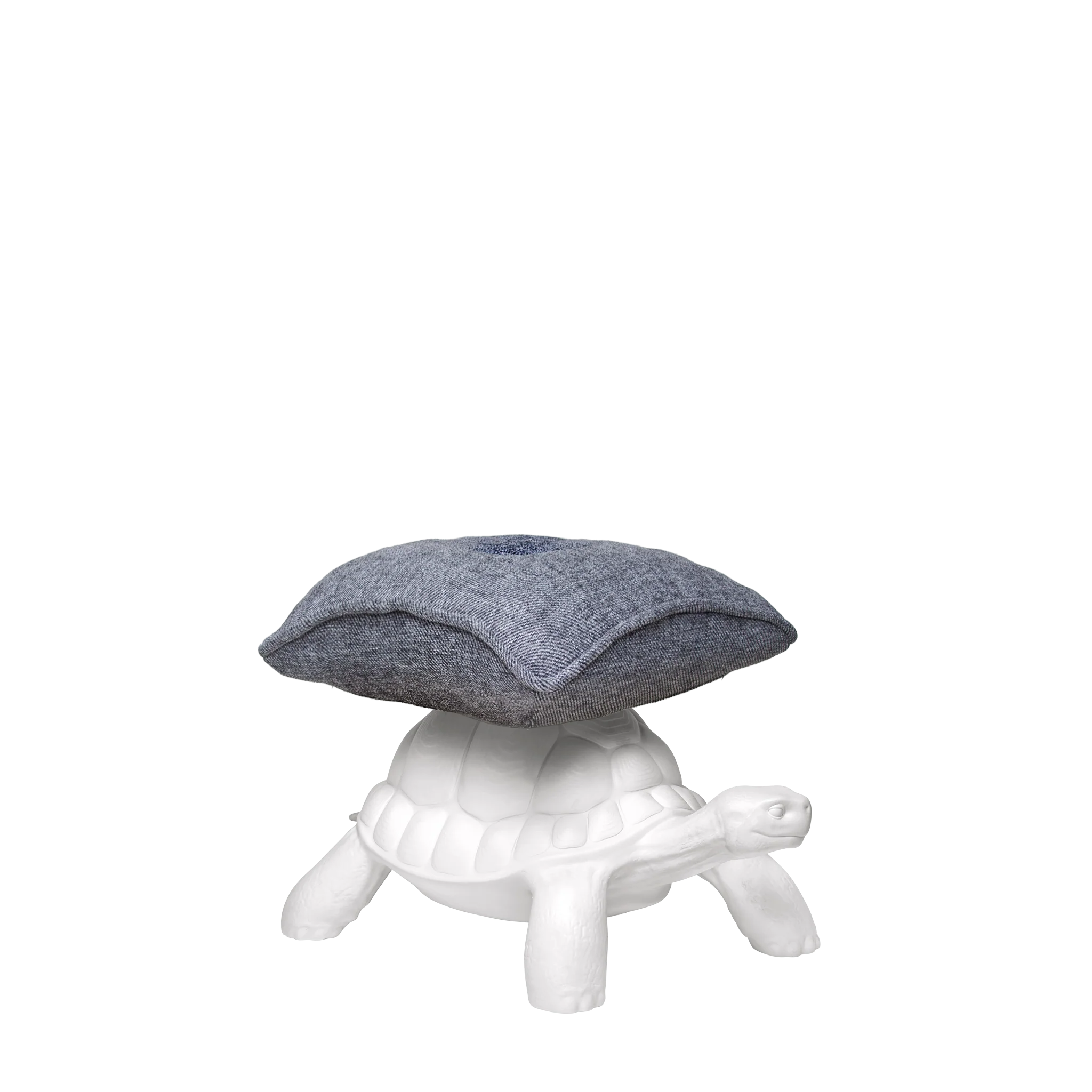 Turtle Carry Pouf, designed by Marcantonio, carries on its carapace a soft cushion that can function as a seat, footrest, or an additional tabletop. For your moments of relax!