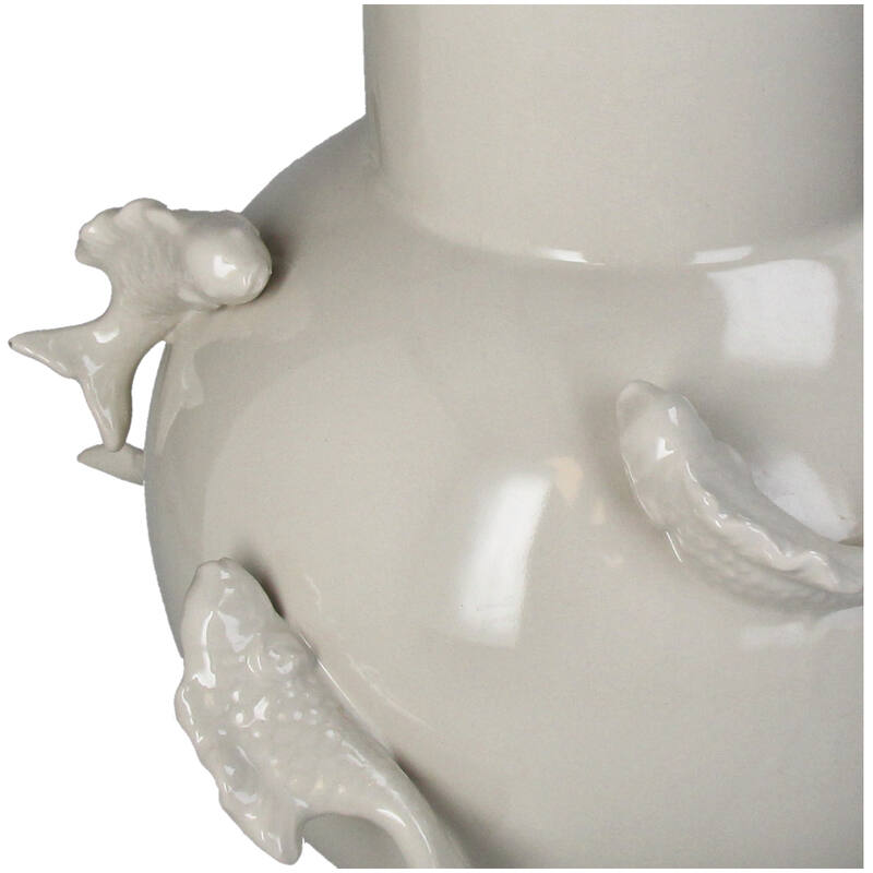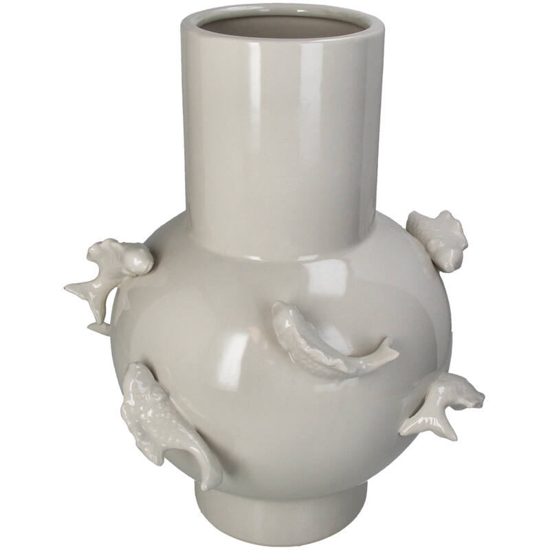 An ivory-colored stoneware vase with fish motif measuring 24.2×24.2×36.5cm, ideal for a unique and maritime decoration.